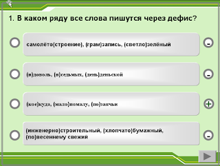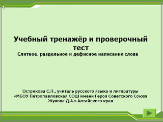 Интерактивный учебный тренажёр и проверочный тест. "Слитное, раздельное и дефисное написание слова"